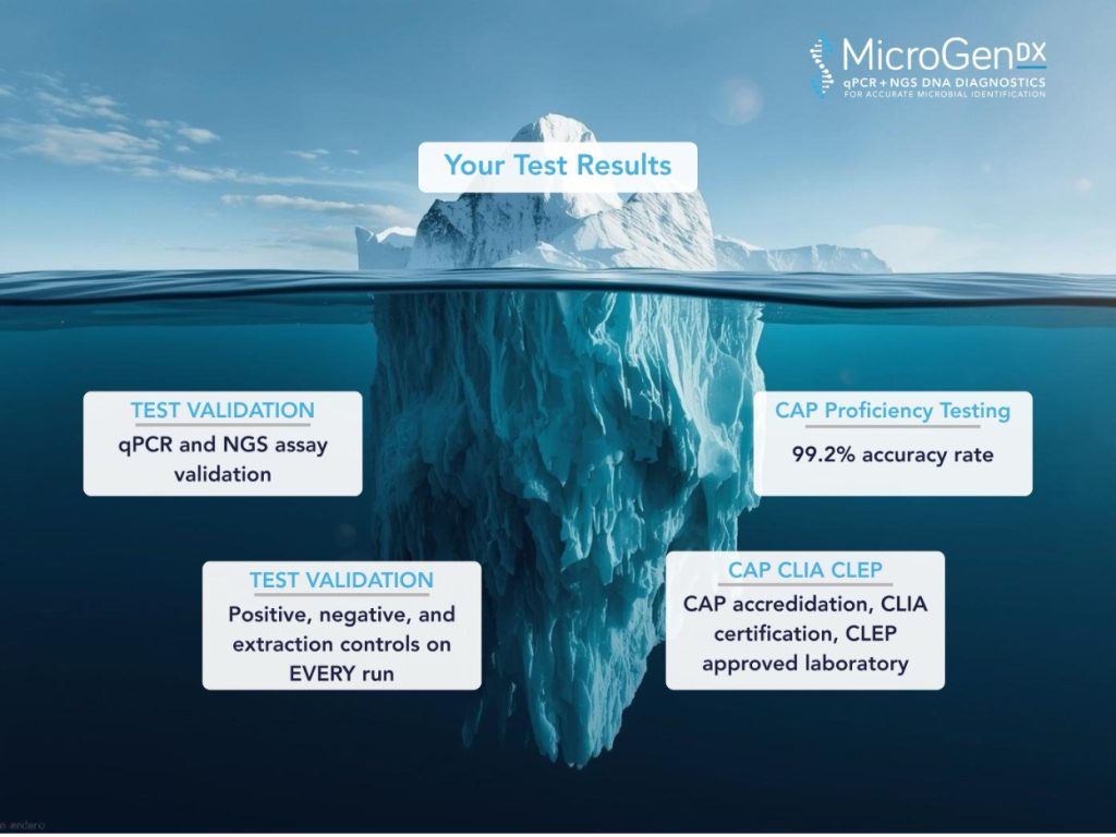 The next time you receive a test result from MicroGenDX, remember that what you are seeing is just the visible tip of an enormous quality iceberg. Below the surface lies the test validation that confirmed our assays work as intended, the daily quality controls that verified our instruments performed correctly, the proficiency testing that compared our results against national standards (and gave us a 99.2% accuracy rate that we’re pretty proud of), the training and competency assessments that ensured qualified personnel performed your test, and the accreditation and certification that provide external validation of our entire quality system.